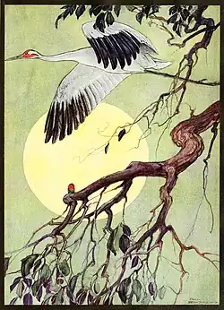 THE Humming-bird and the Crane were both in love with the same pretty girl. She preferred the Humming-bird, who was as pleasing to look at as the Crane was awkward. But the Crane was so persistent that in order to get rid of him she finally told him that he must challenge the other bird to a race and that she would marry the winner. The Humming-bird was so swift—almost like a flash of lightning—and the Crane so slow and heavy, that she felt sure the Humming-bird would win. She did not know that the Crane could fly at night.