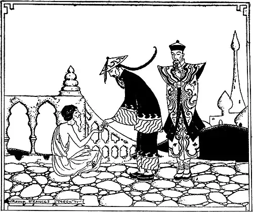 “Baba Abdalla,” the caliph said, “your sin has been great; but, God be praised, your self-inflicted penance proves your sorrow. That you may forego your daily asking of alms, I give you henceforth four silver dirhems a day, which my grand vizier shall present to you daily with the penance you have imposed on yourself.”