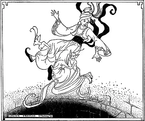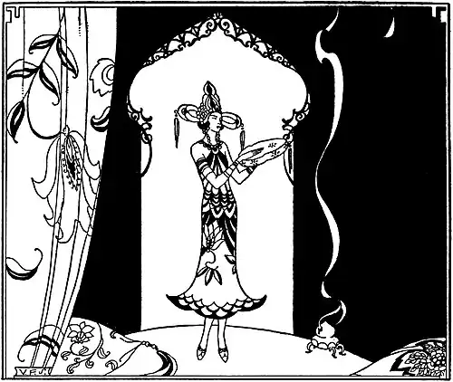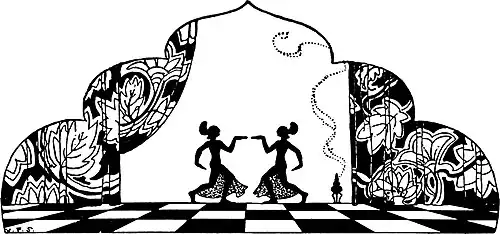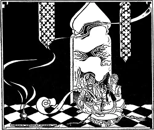 “I had hoped,” said Scheherazade, “to tell your majesty the astonishing story of the wonderful lamp of Aladdin, but I perceive that it is so near day that there will not be opportunity. Although the story which I have just brought to so happy an ending is full of surprises and enchantments, yet this one, too, has some singular incidents—”