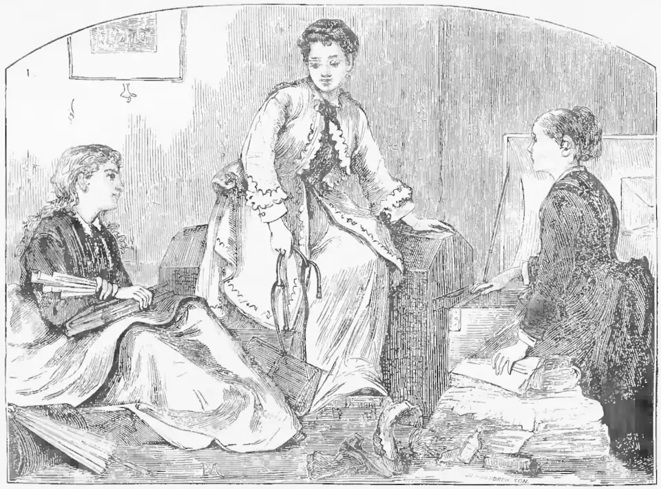 "The Consultation—Trunks or "Shawl-Straps."—Page 69.