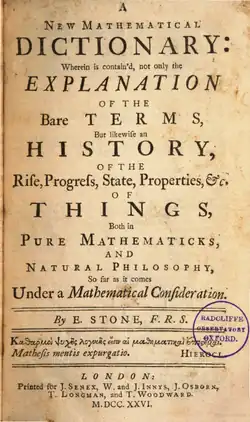 - A New Mathematical Dictionary (1726, 1743).