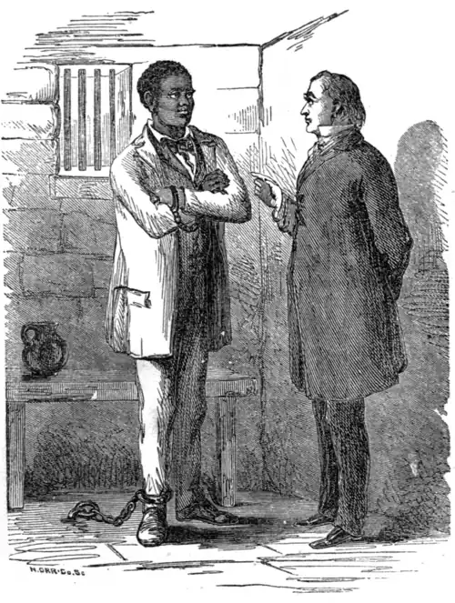 "No, no," said the preacher; "I am willing to let the law take its course, as it provides for the punishment of a slave with death if he strikes his master. We had better let the court decide the question. Moreover, as a Christian and God-fearing people, we ought to submit to the dictates of justice. Should we take this man's life by force, an Allwise Providence would hold us responsible for the act."