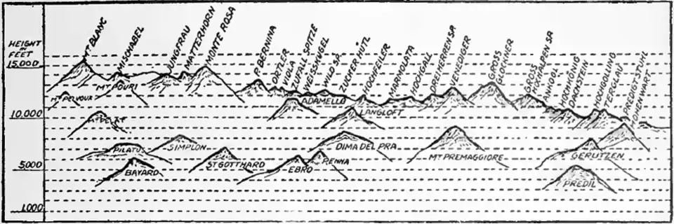 PROFILE MAP SHOWING MAIN PEAKS OF THE ALPS