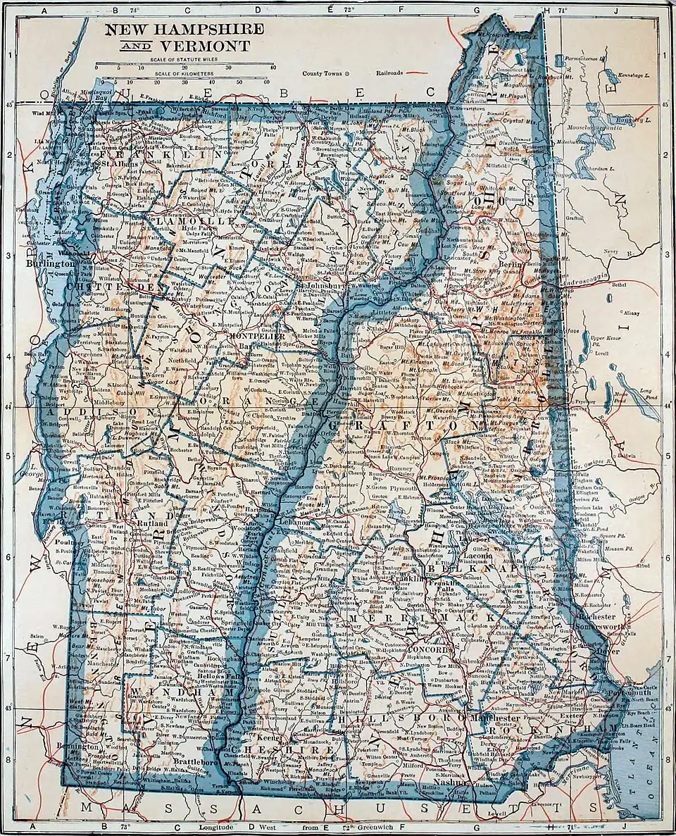 History.—New Hampshire was settled in 1629 by an English colonist named Mason, under a grant made in 1623. In 1641 New Hampshire became a portion of the Colony of Massachusetts; who maintained her authority there till 1679, when the case being brought before the highest court of appeal in England on colonial matters, it was decided that the claim of Massachusetts was illegal, and New Hampshire was constituted a separate province. In 1686, the charter of Massachusetts, having been annulled, New Hampshire, Maine, Massachusetts, and Narragansett were united in one royal province, under President Dudley, and afterward under Governor Andros. In 1689, upon the news of the English Revolution, the government of Andros was overthrown, and Massachusetts resumed her old charter. In 1692, the province of New Hampshire was re-established by the English government. In 1776, the province issued a public declaration of independence, and organized a temporary government. After taking a prominent and distinguished part in the War of the Revolution New Hampshire, in convention (1788), gave in her adhesion to the United States Constitution by a majority of 11 votes in an assembly numbering 103; and in 1807, the seat of government was permanently established at Concord. On July 1, 1869, the State ratified the 15th Amendment to the National Constitution.