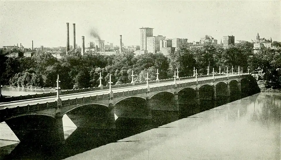 | RICHMOND, CAPITAL OF VIRGINIA, SHOWING THE NEW SKY LINE AND A BRIDGE OVER THE JAMES RIVER |