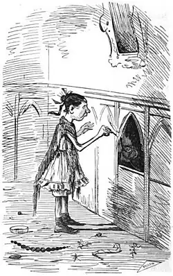 Scarcely had the wedding-train left the Grange, than Alice Sedilia, youngest daughter of Lady Selina, made her escape from the western tower, owing to a lack of watchfulness on the part of Clarissa. The innocent child, freed from restraint, rambled through the lonely corridors, and finally, opening a door, found herself in her mother's boudoir. For some time she amused herself by examining the various ornaments and elegant trifles with which it was filled. Then, in pursuance of a childish freak, she dressed herself in her mother's laces and ribbons. In this occupation she chanced to touch a peg which proved to be a spring that opened a secret panel in the wall. Alice uttered a cry of delight as she noticed what, to her childish fancy, appeared to be the slow-match of a firework. Taking a lucifer match in her hand she approached the fuse. She hesitated a moment. What would her mother and her nurse say?