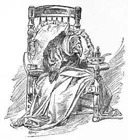 The old man seemed to be greatly agitated, and hurriedly whispering, “We thought you were never coming, sir!” led the way through the passage in great haste. Davy noticed that they were now in a sort of tunnel made of fine grass. The grass had a delightful fragrance, like new-mown hay, and was neatly wound around the tunnel, like the inside of a bird’s-nest. The next moment they came out into an open space in the forest, where, to Davy’s amazement, the Cockalorum was sitting bolt upright in an arm-chair, with his head wrapped up in flannel.