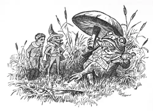 “Forty croaks,” said the Toad, in a husky whisper; and then, as a frog croaked in the pool, he added, “That makes it forty-one. The Snoopers have come in, and Thimbletoes is shaking in his boots.” And with these words the Toad coughed, and then hopped heavily away.