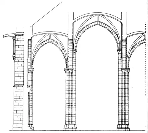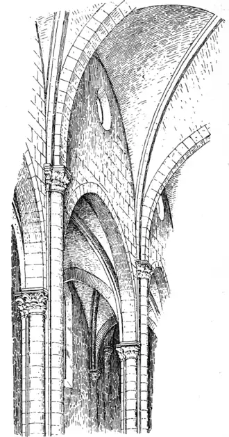 - ↑ In France the same result is sometimes reached, as at Paris, by stilting the intermediate rib; but it is more common to employ a more acutely pointed arch, as at Laon.