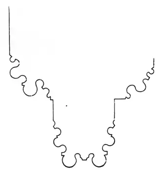 Italian vault ribs are commonly bevelled, but they are rarely otherwise adorned. The diagonal ribs of the Cathedral of Florence, however, have the section shown in Fig. 164, where the use of the cyma recta is one of the many indications of the hold which classic features had on the minds of the builders at this time in Italy. It is always observable that the use which the Italians made of these classic elements was never inventive, as it was with the Gothic architects. They are often associated with elements which differ greatly from those of classic design, but they themselves remain unmodified.