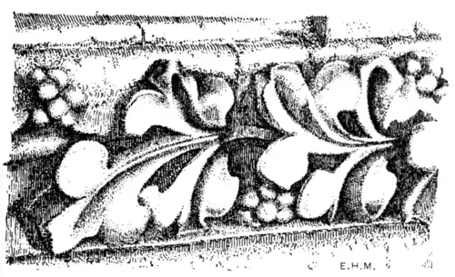 The bell is treated as an independent surface, a considerable portion of which is entirely unoccupied by the ornament, and the independence of the leaf is further emphasised by the imitative treatment of its foot-stalk, which shows, at its base, the natural enlargement, and the portion of clinging fibre which adheres where a leaf is torn from its parent stem.