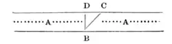 It might seem strange that in 'round'[10] timber the core does no harm and so is left undisturbed, while in wood whose texture has been interfered with,[11] unless it is taken out altogether, it causes disturbance and warping; it were rather to be expected that it would die[12] when exposed. Yet it is a fact that masts and yard-arms are useless, if it has been removed from the wood of which they are made. This is however an accidental exception, because the wood in question has several coats,[13] of which the strongest and also thinnest is the outermost, since this is the driest, while the other coats are strong and thin in proportion to their nearness to the outermost. If therefore the wood be split, the driest parts are necessarily stripped off. Whether however in the other case the object of removing the core is to secure dryness is matter for enquiry.[14] However, when the core 'draws,' it twists the wood, whether it has been split or sawn, if the sawing is improperly performed: the saw-cut should be made straight and not slant-wise. [15]Thus, if the core be represented by the line A, the cut must be made along the line BD, and not along the line BC: for in that case, they say, the core will be destroyed, while, if cut in the other way, it will live. For this reason men think that every wood has a core: for it is clear that those which do not seem to possess one nevertheless have it, as box nettle-tree kermes-oak: a proof of this is the fact that men make of these woods the pivots[16] of expensive doors, and accordingly[17] the headcraftsmen specify that wood with a core shall not[18] be used. This is also a proof that any core 'draws,' even those of the hardest woods, which some call the heart. In almost every wood, even in that of the silver-fir, the core is the hardest part,[19] and the part which has the least fibrous texture:—it is least fibrous because the fibres are far apart and there is a good deal of fleshy matter between them, while it is the hardest part because the fibres and the fleshy substance are the hardest parts. Wherefore the headcraftsmen specify that the core and the parts next it are to be removed, that they may secure the closest and softest part of the wood.