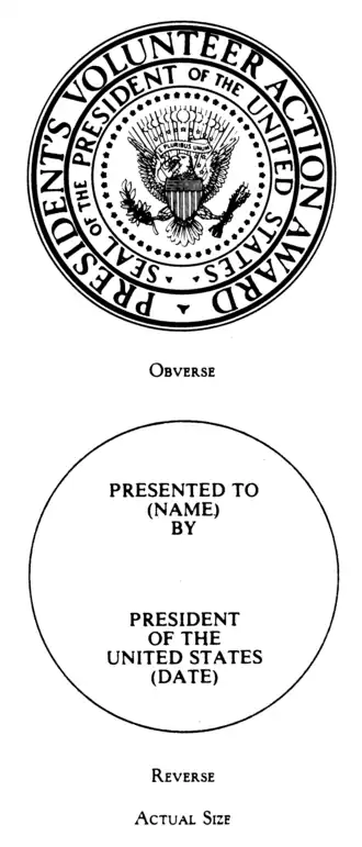 Section 1. The President's Volunteer Action Award is hereby established for the purposes of recognizing outstanding voluntary contributions by individuals and organizations toward helping others in our society, and of demonstrating to all Americans what can be accomplished through voluntary action. The award shall consist of a sterling silver medallion, the design of which accompanies and is hereby made a part of this Order.
