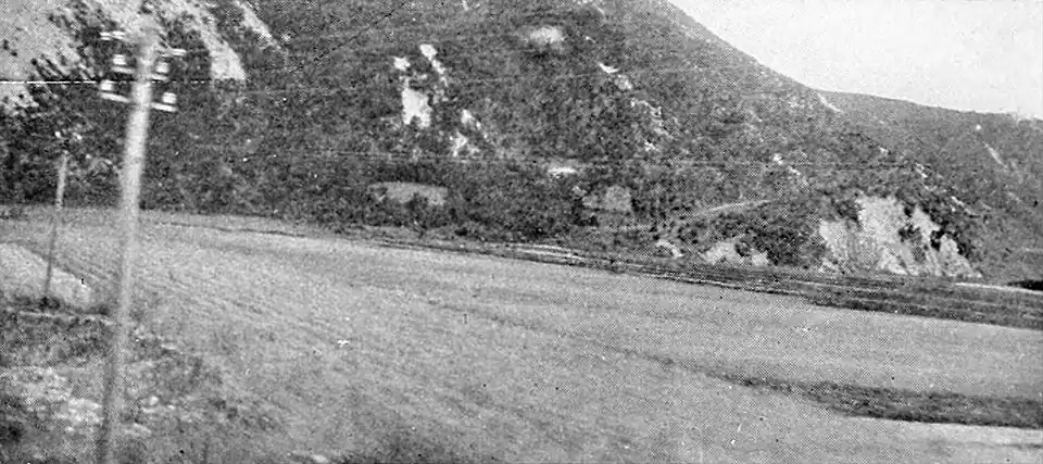 After leaving the plains country the railway traversed a narrow winding valley less than a mile wide, with gradient so steep that our train was divided. Fully sixty per cent of the hill slopes were cultivated nearly to the summit and yet rising apparently more than one in three to five feet, and the uncultivated slopes were closely wooded with young trees, few more than twenty to thirty feet high, but in blocks evidently of different ages. Beyond the pass many of the cultivated slopes have walled terraces. We crossed a large stream where railway ties were being rafted down the river. Just beyond this river the train was again divided to ascend a gradient of one in thirty, reaching the summit by five times switching back, and matched on the other side of the pass by a down grade of one in forty.