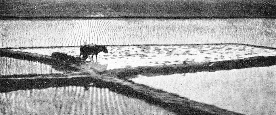 Fig. 226—Group of houses standing in rice paddies, on edge of terraces, surrounded by water.