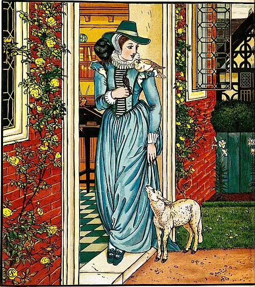 the lamb and brought it home. Some neighbours, finding how fond of such pets Margery was, presented her with a nice playful little dog called Jumper, and also with a skylark. Now, master Ralph was a shrewd bird, and a bit of a wag too, and when Will, the lamb, and Carol, the lark, made their appearance, the knowing fellow picked out the following verse, to the great amusement of everybody:- —