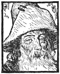 Then he set out: and when he had gone on his way some time he came to a deep valley, overhung with rocks and woods; and as he looked around, he saw standing above him on one of the rocks a little ugly dwarf, with a sugarloaf cap and a scarlet cloak; and the dwarf called to him and said, "Prince, whither so fast?" "What is that to thee, you ugly imp?" said the prince haughtily, and rode on.