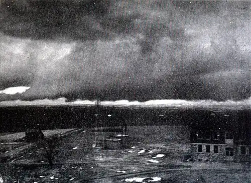 - ↑ The Blue Hill Observatory reports rain falling when the temperature of the air was about 15° F—a very unusual phenomenon. It is not likely, however, that the rain-drops had reached a temperature much below freezing.