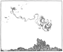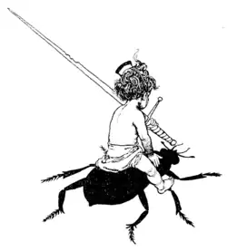 Presently a great cock-chafer came buzzing past; he caught sight of her, and immediately fastening his claw round her slender waist, flew up into a tree with her. But the green leaf still floated down the brook, and the butterfly with it; he was bound to the leaf and could not get loose.