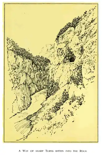 If one follows the Corniche road after passing into Italy, only the man of wildest imaginings can feel an appreciable difference between it and the country that is left behind. There are still the colorful sea, the baked white road, and the pink villas, where surely no one was ever born or has ever died. There is not the dignity of these simple events about their vapid architecture. But twist the motor to the left after leaving Ventimiglia, thrust its nose into the Maritime Alps, and let it smell out Tenda, and one's forgotten Italian speech comes back to him by the aid of sign-posts and road warnings. It is a way of sharp turns bitten into the rock, across mountain torrents busily furnishing electric power to the gambling-houses back on the Riviera, and past vineyards, hanging from crevices, which soften the grim visage of Mother Earth as do long eyelashes beautify a stern-faced woman.