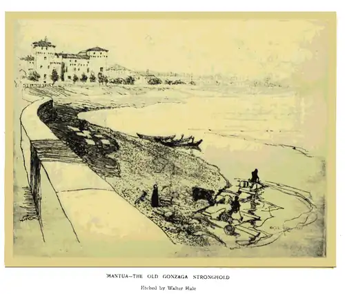 On the outskirts of Mantua they carried their grief, along with the copy of Shakespeare, into a small boat moored to the bank. This was done at the instigation of the Illustrator; by including them in his sketch, he argued, he could not only use but watch them. I asked myself if it was not Machiavelli who had said that he could deal with simple statecraft but not with youth, and as I mused, while the artist was intent upon the outlines of the old Gonzaga stronghold, a little rowboat slipped out into the Lago Inferiore, past the washing-women, past us, out of the sketch, out of our vision for an hour.