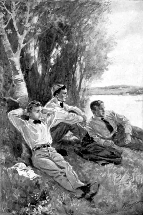 THREE boys lay at their ease in the shade of the white birches which crown the top of Hood’s Hill, that modest elevation on Fox Island at the upper end of Outer Beach which, with the exception of Mount Emery, is the highest point on the island. From this proud vantage, some twelve feet above the surface of the river, the view was unobstructed for two miles up and down the Hudson. At the foot of the little slope, where coarse grass sprouted from the loose sand, Outer Beach began, shelving abruptly to the lapping waves and shimmering with heat waves; for in the neighborhood of Ferry Hill and Coleville, toward the end of the month of June, the sun can be very ardent when it tries; and to-day it was evidently resolved to be as fervent as it could, for, although it still lacked a few minutes of eleven, the heat was intense even out here on the island.