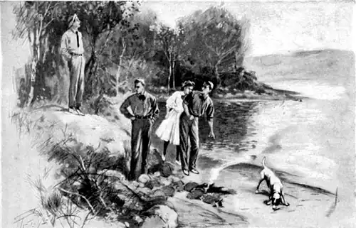 They reached Point Harriet without finding trace of the quarry, although whenever Snip barked in the woods Chub insisted that the poet was treed. They turned homeward and passed the Grapes and Hood’s Hill. Then, as they scrambled down to Outer Beach, Roy gave a shout. At their feet lay the still smoldering remains of a small fire. The sand between the fire and the edge of the water was trampled, and marks showed where a boat of some sort had been pulled partly out of the water. But there was no one in sight.