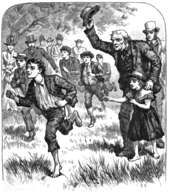 After lunch the children ran races for prizes, and Benny was invited to compete with the rest. This suited him exactly, and very soon after, with about a dozen others, he was bounding up a broad avenue between the trees, in a well-matched and most exciting race.