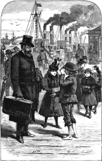 One bitterly cold afternoon he was at his old place, waiting for the railway boat to come up to the stage, in the hope that some one of its many passengers would permit him to carry his or her bag, when he noticed a gentleman standing against the side of the boat with a portmanteau in his right hand, and holding the hand of a little girl with his left.