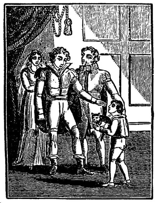 To the captain, under Mr. Fitzwarren's instruction, or rather restraining voice, (for Whittington's gratitude knew no bounds,) he made a noble present. He rejoiced the heart of the whole ship's crew by his bounty; and, in closing the lid of the jewel box, sent as a part of the purchase of his cat, which was of great value, he wrote thereon, Miss Fitzwarren, who received a nod from her father, not to contradict him at that time. "And, my honoured madam," said he to his mistress, "what token of my respect, my—my—feelings, (for his heart had not an expression equal to his wish,) can I offer you?" "Give me your hand," replied that worthy woman, "let mo have the pleasure of seeing you composed, for your present happiness is too agitating for your spirits, and you will greatly oblige me."