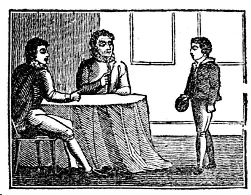 He passed the next day without food, for his last and only penny had fallen out of his pocket, and had been picked up by some one before he had discovered his loss. Hungry, weary, faint, and deeply dejected, he was ashamed to beg, and knew not who to ask for work: when, on passing a gentleman's door in the Minories, in this deplorable state, he resolved to knock at it, his mind telling him he should be benefited thereby. He
