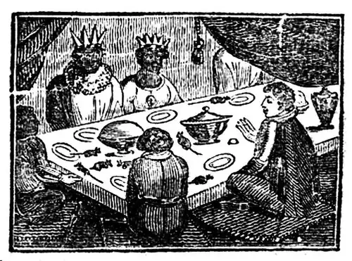 The arrival of a ship on this coast was so pleasurable, because so unusual a thing, that the king sent some of his high courtiers to congratulate them on their safety, if compelled by a tempest to visit them. The captain made suitable returns to their compliments; and accepted the invitation sent him by the king and queen, together with such persons as he chose should share the honour, to dine with them. But what must be his surprise, when, on an elegant dinner being served up, an