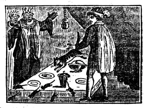 Away ran the captain to the ship, while another dinner was providing, and, taking puss under his arm, returned to the hovel, called a palace, in time to see the second dinner meet with the same fate as the first.