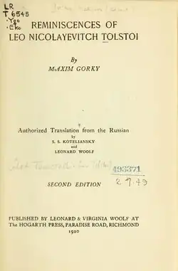 Gorky - Reminiscences of Leo Nicolayevitch Tolstoi.djvu