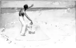 As soon as the leaves caught, the sorcerer leaped like a deer out of the circle, and began to race along the beach like a hound that has been bathing. As he ran, he kept stooping to snatch shells; and it seemed to Keola that they glittered as he took them. The leaves blazed with a clear flame that consumed them swiftly; and presently Keola had but a handful left, and the sorcerer was far off, running and stopping.