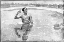 Since first the islands were fished out of the sea, there was never a man so terrified as this Keola. He swam indeed, but he swam as puppies swim when they are cast in to drown, and knew not wherefore. He could but think of the hugeness of the swelling of the warlock, of that face which was great as a mountain, of those shoulders that were broad as an isle, and of the seas that beat on them in vain. He thought, too, of the concertina, and shame took hold upon him; and of the dead men's bones, and fear shook him.