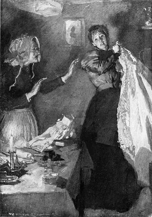 The old woman accompanied Sue to her temporary quarters and helped her to unpack. Among other things she laid out a night-gown tastefully embroidered.
