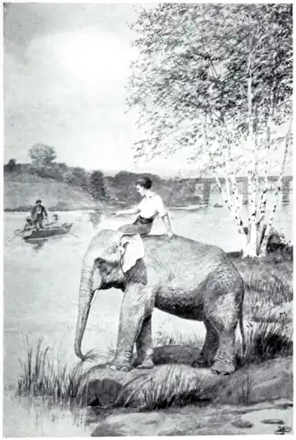 As it was a very hot night, and Ali had been sleeping lightly when the car which carried himself, along with Joie and two other elephants, toppled upon the bridge and hurtled into the river, he was awake almost before it struck the water. When the car finally settled at a slant of perhaps thirty degrees, and the water came pouring in up to Ali's knees, he knew what had happened.