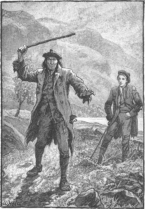 He became at once very polite, and after trying to soften me for some time, but quite in vain, he cursed me once more in Gaelic and took himself off. I watched him striding along, through bog and brier, tapping with his stick, until he turned the end of a hill and disappeared in the next hollow. Then I struck on again for Torosay, much better pleased to be alone than to travel with that man of learning. This was an unlucky day; and these two, of whom I had just rid myself, one after the other, were the two worst men I met with in the Highlands.