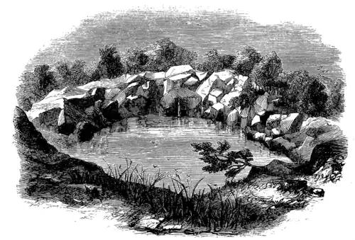 - ↑ Shortly before reaching "Baboon Fountain" I should remark that, at a place called Orujo, we saw a cavity of a similar shape, though on an infinitely smaller scale. It consisted of a circular-shaped basin in the limestone rock ninety feet in diameter by thirty in depth. As it was dry at the time, we ascertained that the bottom was flat, or nearly so. In various other places we also met with similar basins, but on a still smaller scale than Ornjo.