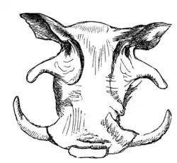 On several occasions I had narrow escapes from being gored by the horns of these ugly monsters. Thus one animal, on receiving a mortal wound, charged me with such fury as to carry completely away the fore part of my “skärm,” and I only saved my life by throwing myself with great force against the opposite wall, which fortunately gave way.