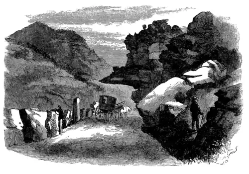 I also made excursions into the neighborhood. Among other interesting places, I visited, in company with Mr. Bain (the distinguished South African geologist), the famous pass, called after my kind host, Bain's Kloof, through which the road leads across the Drakenstein mountains from the village of Wellington to the district of Worcestershire. The vignette below is a view of a certain part of the pass designated