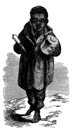 - ↑ The above wood-cut is a portrait of a negro youth born and bred at the Cape. He has been jobbing, and is returning home with the various articles intrusted to his charge.