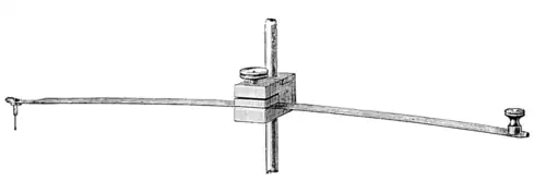 Fig. 32.—Steel spring for making and breaking the primary circuit of induction coil. The point on the left is caused to dip into mercury, and thus make contact. See Fig. 29.