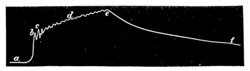 Let us now take a tracing of a simple muscular contraction on a blackened surface moving with great rapidity. This is usually