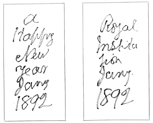 Fig. 40.—Time of making voluntary movements in writing letters. Each little wave is the one-two-hundred-and-fortieth of a second. Examine with a magnifying glass. In the experiment the lines were white on a black ground.
