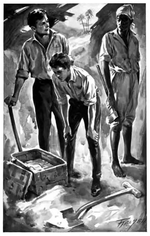 "Gosh! That's funny!" the boy exclaimed, looking round at his friend as he lifted out the sand on the shovel. "Tempest, do you suppose—"