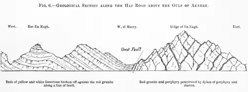 | Fig. 6.—Geological Section along the Haj Road above the Gulf of Arabah. | |