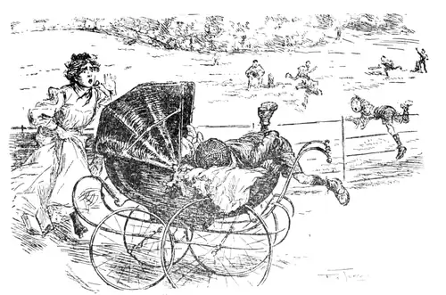 An Echo from Epsom.—"Wot's the matter, Chawley?" "Matter! See that hinnercent babby there? 'E's got 'is pockets full o' tin tacks!"