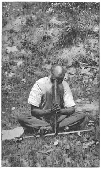 The method of producing fire by drilling used formerly by the Kurnai is shown in the accompanying illustration. The flower stem of the grass-tree was mostly used.